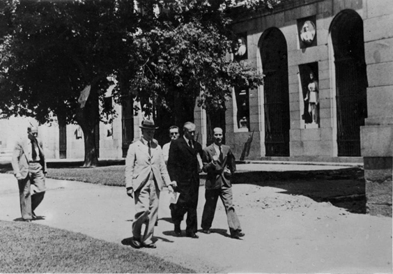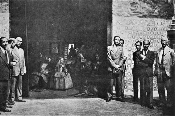 En Valencia, Sir Frederic Kenyon quiso comprobar que el contenido de las cajas coincidía con las etiquetas y pidió desembalar algunas, incluida la de Las Meninas. Tras confirmarlo, inmortalizó el momento.